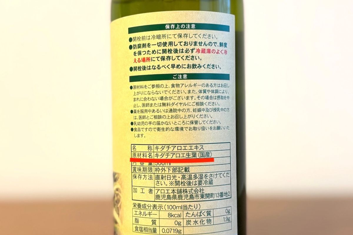 「完熟アロエまるごと純しぼり」は、国産のキダチアロエを100%使用。そのため、添加物や防腐剤を一切含まない自然そのものの力を体感できます。